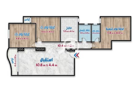 - 3 غرف ريسبشن 2 حمام 2 تراس