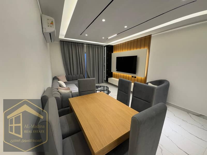 التقسيمة: 2 غرفة نوم (منهم ماستر) + 2 حمام + مطبخ + ريسبشن