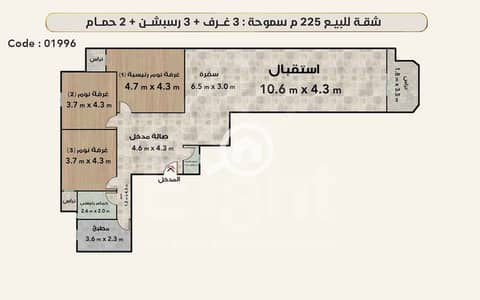 • 3 غرف منهم غرفه ماستر - ريسبشن 3 قطع - 3 حمام