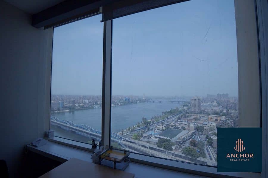 مكتب على النيل مباشرة للايجار 280 متر مجهز بالتكييفات فى أبراج الفيرمونت