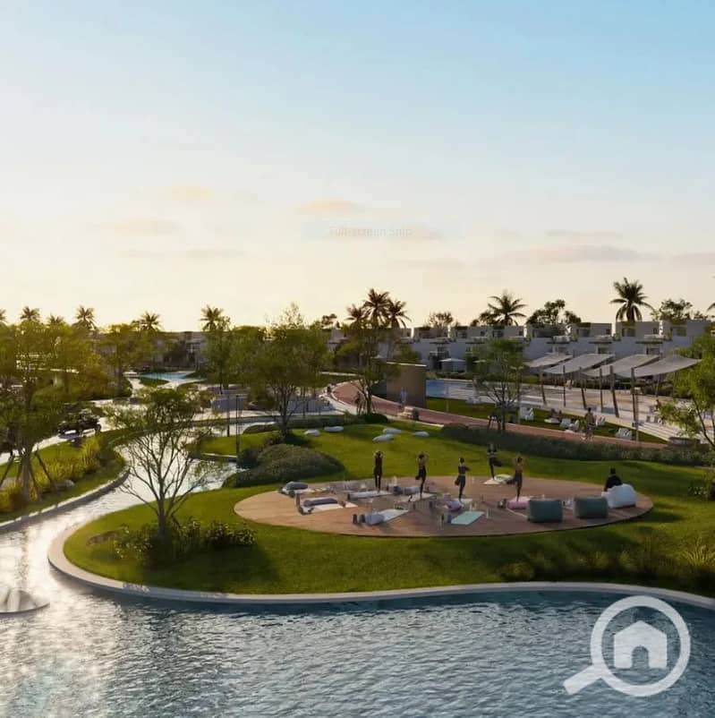 إطلالة على مساحات خضراء وبحيرات صناعية.