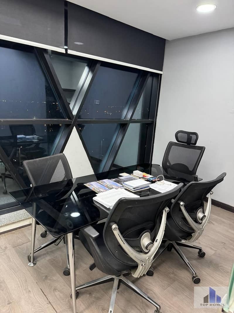 مكتب متشطب و مفروش للايجار على التسعين الشمالى مباشرة - كايرو بزنس بلازا