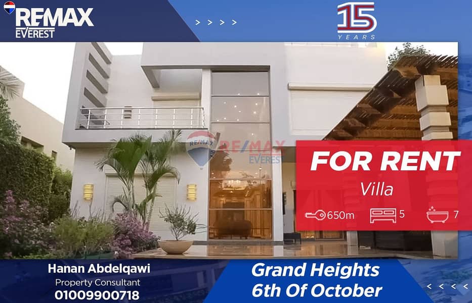 فيلا مميزة للإيجار داخل كمبوند جراند هايتس الراقي، توفر مساحات واسعة وخصوصية عالية وتشطيب فاخر، ومناسبة للعائلات الباحثة عن سكن راقٍ ومريح.