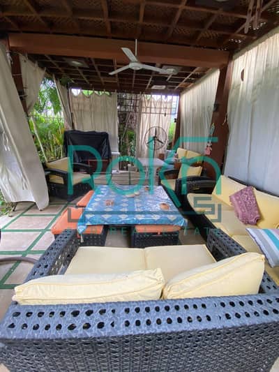 الطابق الأرضي: ردهة استقبال - غرفة طعام - مطبخ عصري - حديقة + مظلة - غرفة معيشة - حمام - غرفة متعددة الاستخدامات
