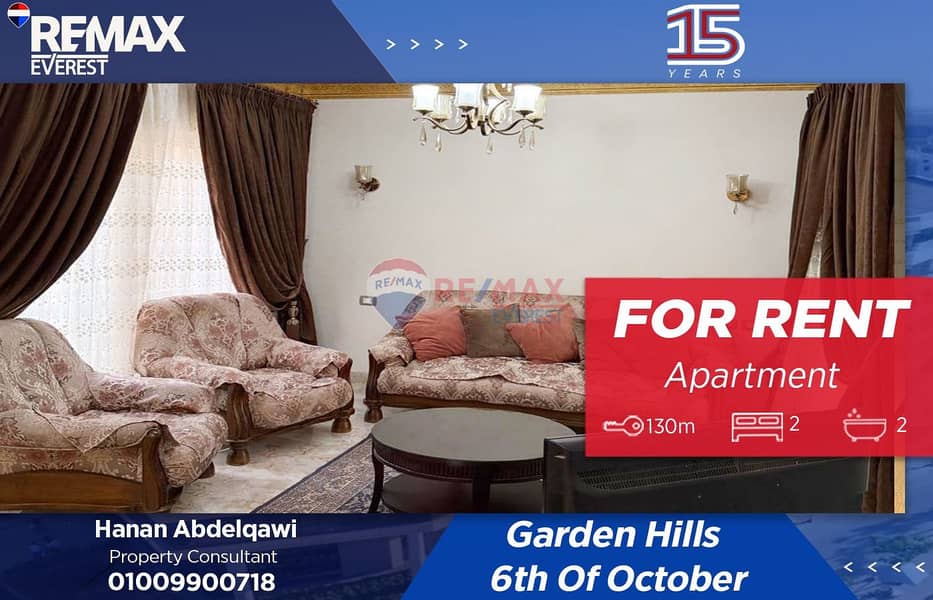 شقة للإيجار في كمبوند جاردن هيلز بموقع مميز وبيئة سكنية هادئة، جاهزة للسكن فورًا.