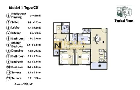 - المساحة والتميز: شقة 158م (دور أول) بإطلالة ساحرة ومباشرة على البحيرات الصناعية والمساحات الخضراء الشاسعة.