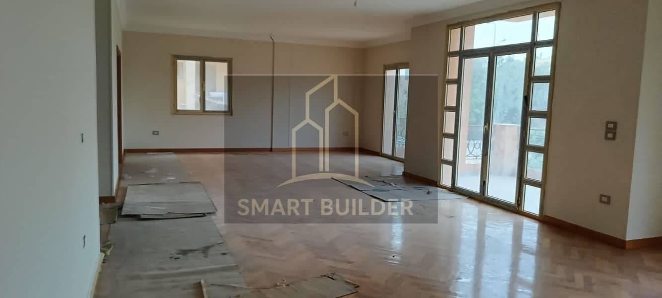 شقة للايجار الياسمين 8 دور كامل مساحة 400 متر فيلات التجمع الاول تشطيب الترا سوبر لوكس موقع متميز جدا دور متكرر بحري فيو حديقة