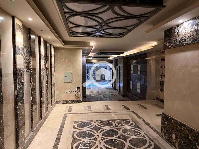 شقة مميزة نصف تشطيب تقع مباشرة على نهر النيل بكورنيش المعادي داخل برج فاخر يتميز بمداخل رخام فاخرة، عدد 2 أسانسير، وجراج مغطى.