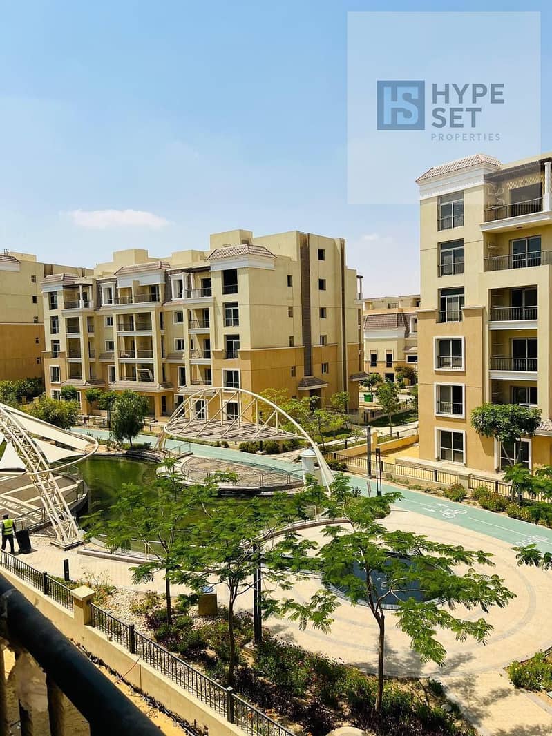 شقه للبيع كورنر فيو لاند اسكيب واتر فيتشر في كمبوند سراي دايركت علي طريق السويس سور في سور مع مدينتي