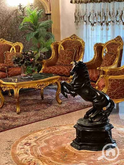 • أثاث فاخر من الأرائك والكراسي المنجدة بنقوش زهرية وإطارات خشبية منحوتة ومذهبة