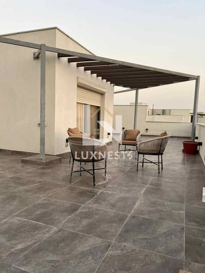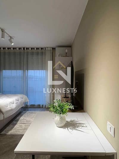 ستوديو مفروش للإيجار داخل كمبوند سوديك فيليت، يتميز بروف خاص واسع وفيو مفتوح على حمام السباحة والمساحات الخضراء، مناسب للسكن الراقي.