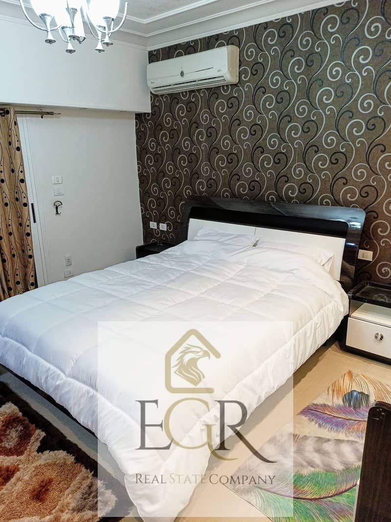 الدور الأرضي: ريسبشن واسع + مطبخ مجهز + حمام + حديقة كبيرة خاصة