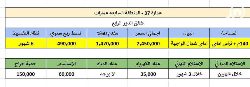 فرصة مميزة لامتلاك شقة سكنية بمساحة 140 متر مربع + تيراس خاص 50 متر في المنطقة السابعة عمارات، في موقع استراتيجي على العمارة مباشرة بالقرب من طريق الحرية.