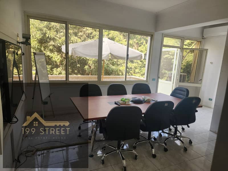 مكتب للإيجار في دجلة المعادي بالدور الأول، مساحة ٣٥٠ متر، مكوّن من ٥ غرف منهم ٣ غرف رئيسية وغرفة ماستر، مكيف بالكامل مع مطبخ، مناسب للاستخدام الإداري،