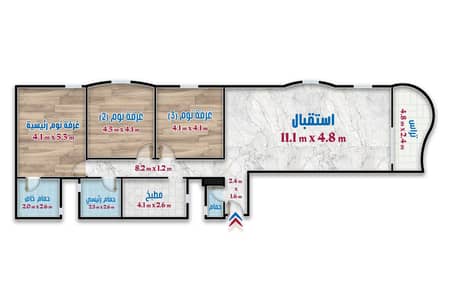- 3 غرف (منهم غرفة ماستر) ريسبشن 3 حمام تراس