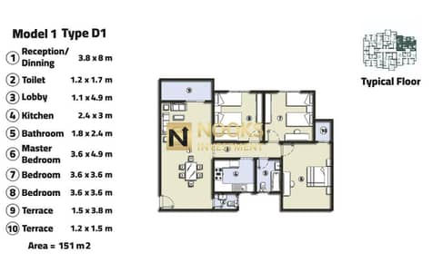 - المساحة والتميز: شقة 151م (دور أول) تتميز بإطلالة مباشرة وساحرة على منطقة البلازا واللاند سكيب .