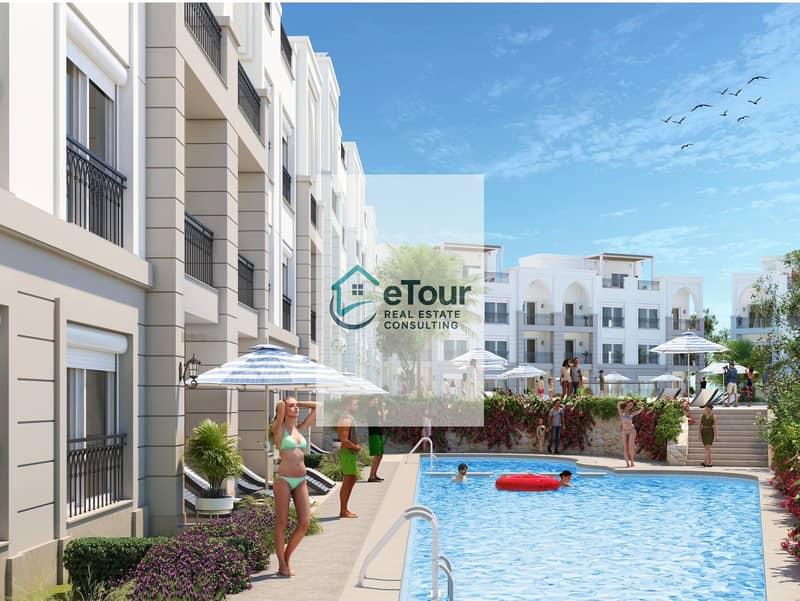 شقة فخمة بشاطيء و خدمات فندقية بقلب البلد و افضل مطور و افضل موقع تشطيب سوبر لوكس علي 3 سنوات