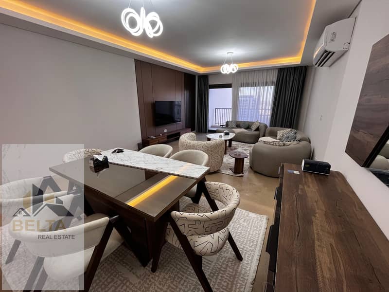 الشقة بتشطيب ألترا سوبر لوكس، فرش مودرن، مكيفة بالكامل، وبإطلالة مفتوحة مباشرة على البلازا، ما يوفر إحساسًا بالاتساع والراحة، وجاهزة للسكن الفوري.