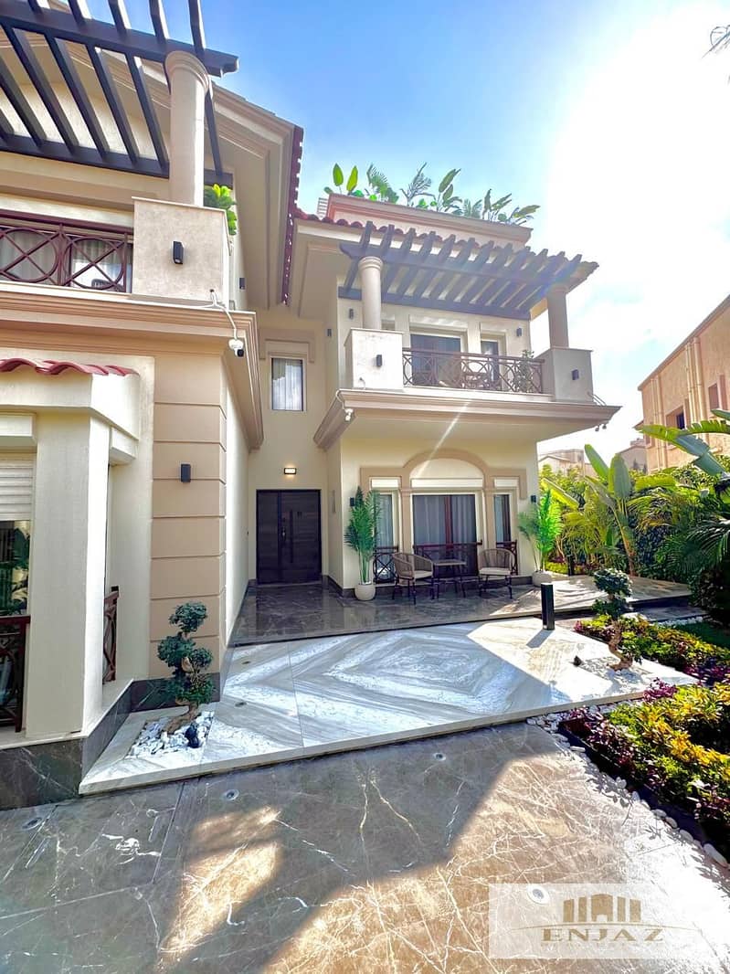 فيلا للبيع في مدينتي تشطيبات الترا سوبر لوكس بها حمام سباحه واسانسير على اكبر وايد جاردن بأكبر مساحه الارض 660م 4 نوم