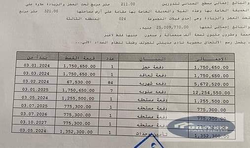 اجمالي عقد: 25 مليون جنيه علي ٧ سنوات