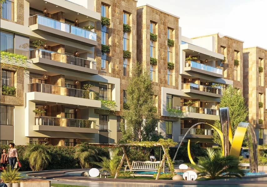 شقه للبيع في كمبوند لازورا في التجمع الخامس علي محور بن زايد الرئيسي