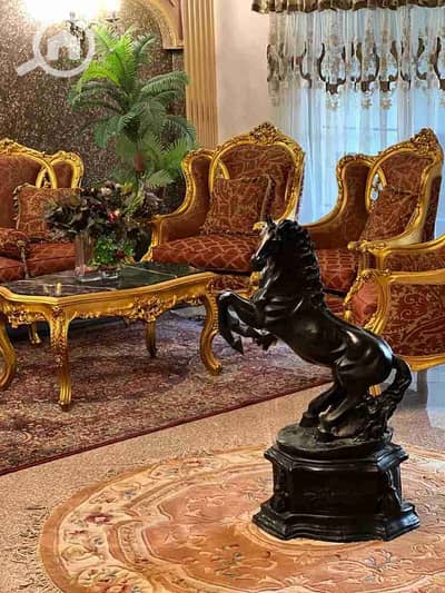 • أثاث فاخر من الأرائك والكراسي المنجدة بنقوش زهرية وإطارات خشبية منحوتة ومذهبة
