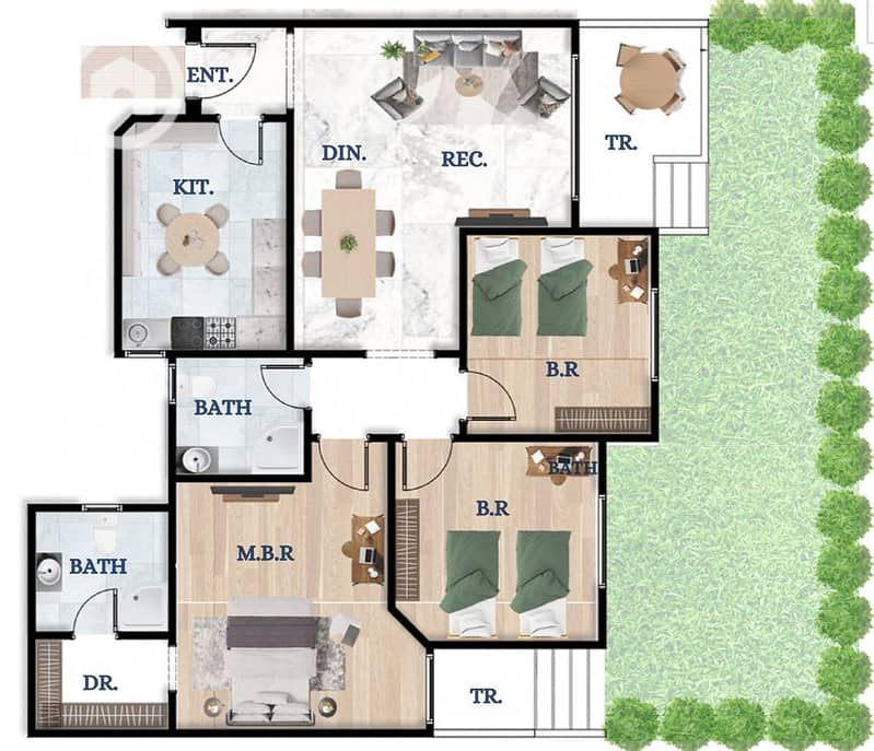 مساحة الشقة 139م + جاردن خاص 78م