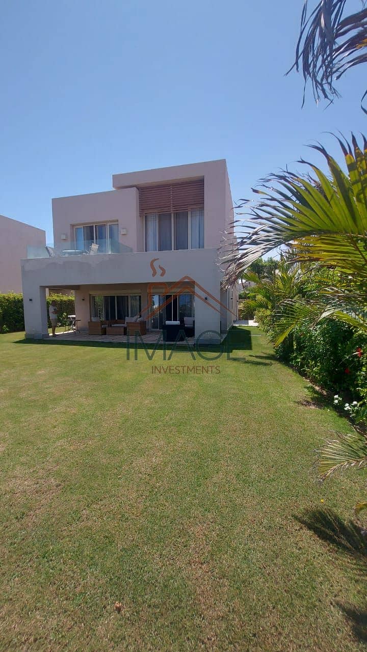 للبيع فيلا جولف مميزة بحديقة خاصة فرش وتشطيب فاخر في هاسيندا باي الساحل الشمالي