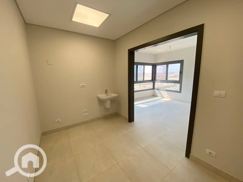 عيادة 80م متشطبة للايجار ميديتاون نيو جيزة بالتكييفات اول سكن
