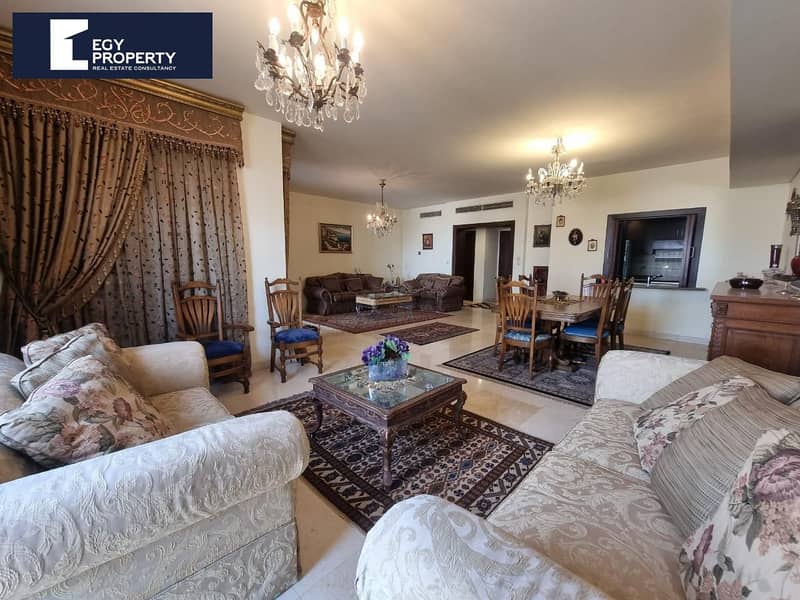 شقة بحديقة خاصة متشطبة و مفروشة بالكامل باطلالة رائعة للبيع في اب تاون كايرو - المقطم