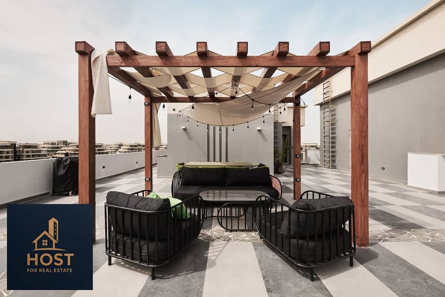 ستوديو مفروش بالكامل مع رووف خاص للإيجار فيلت – سكاي كوندوز داخل أحد أرقى الكمباوندات في التجمع الخامس.