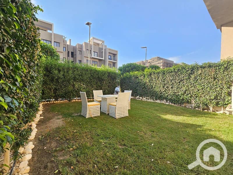 شقة ارضي بحديقة للإيجار في كمبند مراسم فيفث اسكوير نص مفروش ( مطبخ - تكييفات ) موقع مميز