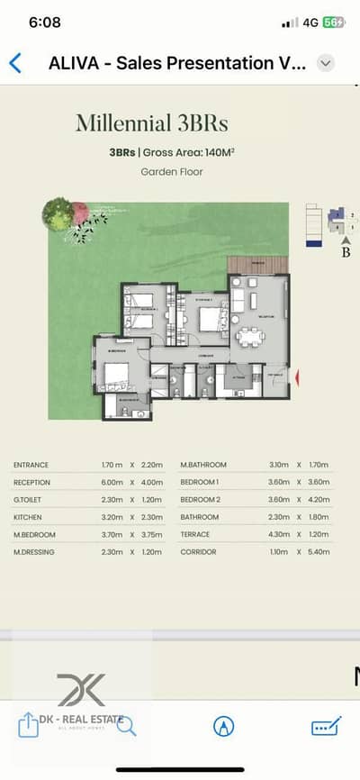 المساحة : 140 متر