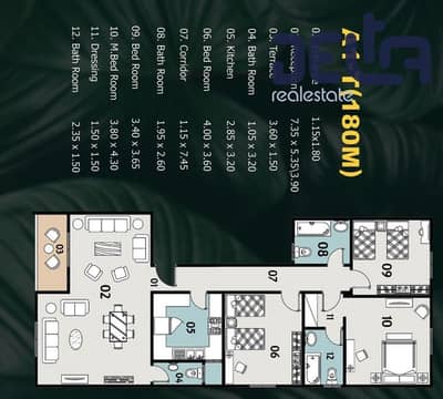 تقسيم داخلي 3 غرف + 3 حمام + ريسبشن + مطبخ + تراس