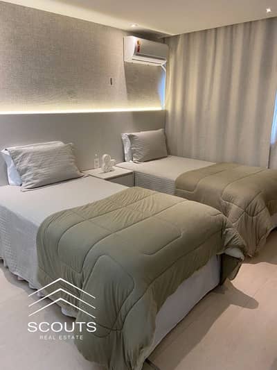 الشاليه بمساحه 169 م ( 4 غرف + دريسنج + تراس باطلاله رائعه علي البحر + امريكان كيتشن + 4 حمام )
