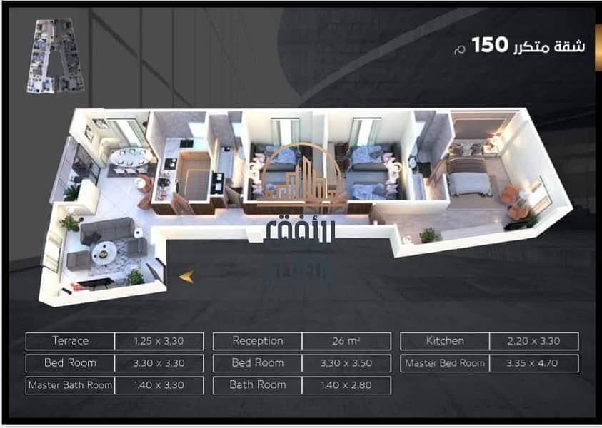 3 غرف نوم و 2حمام ورسيشن قطعتين