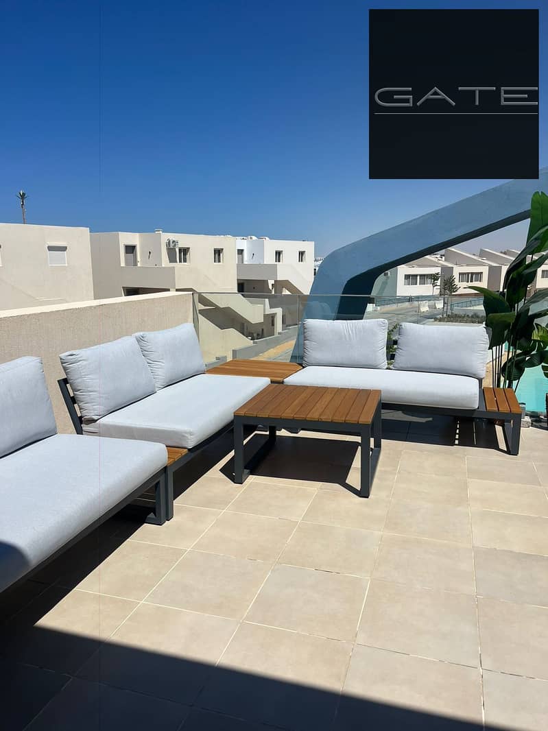 بنتهاوس للبيع فوكا باى - راس الحكمة الساحل الشمالي دايركت على اللاجون تشطيب كامل بالمطبخ والتكييفات والاجهزة