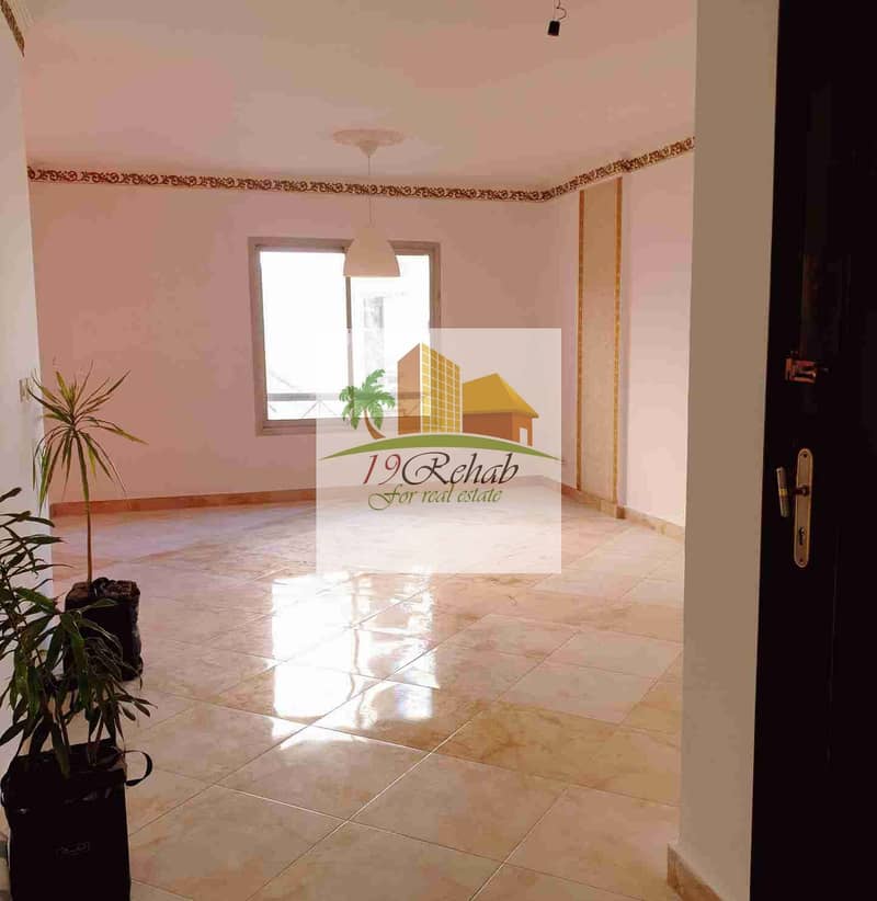 للإيجار قانون جديد بالرحاب شقة بمساحة 155م فيو موقع ممـــــيز جـــــدا أمام السوق القديم مباشره والخدمات