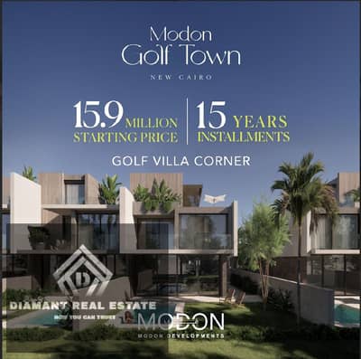 فيلا للبيع كورنر اول جولف كمبوند في التجمع بالتقسيط علي 15سنه خطوات من الجامعه الامريكيه