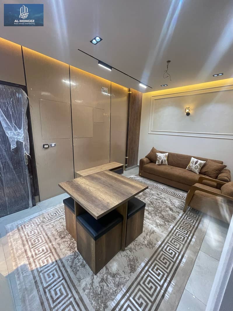 - التقسيم: مساحة عملية تضم غرفة نوم، ريسبشن، مطبخ، وحمام