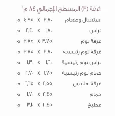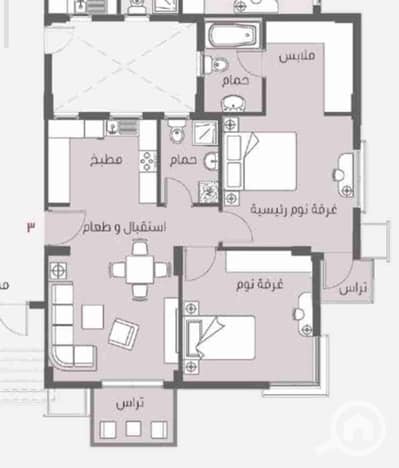 تقسيمة داخلية[2غرفة منهم غرفه ماستر _ 2حمام _ مطبخ _ ريسبشن _ 2تراس ]