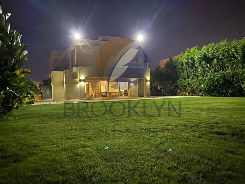 فيلا دوبلكس فيو مفتوح للبيع في هاسيندا باي سيدي عبد الرحمن، موقع مميز على الميدان الرئيسي، حديقة كبيرة، 5 غرف ماستر، تشطيب فاخر، مكيفة بالكامل، شامل ك