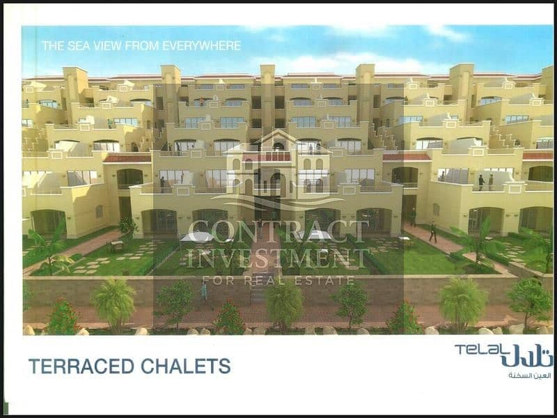 شاليه ريسيل للبيع بأميز فيـو في تلال الـعيـن الـسخـنة متشطب بالكامل جاهز للسكن