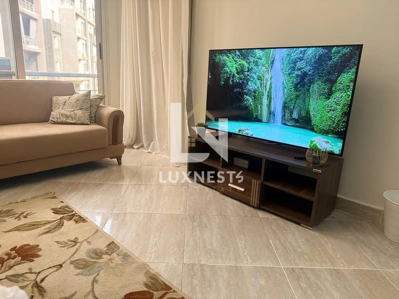 شقة للإيجار داخل دار مصر القرنفل، مفروشة بالكامل فرش جديد وتشطيب عالي الجودة، داخل عمارة بها أسانسير، وتقسيم عملي مناسب للسكن العائلي.