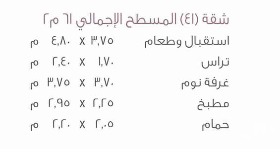 مساحة 61م