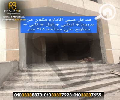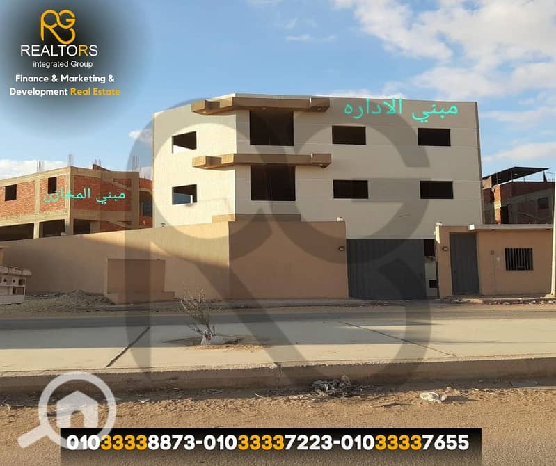 - مبنى إداري: 245 متر، 3 أدوار مع جراج للسيارات