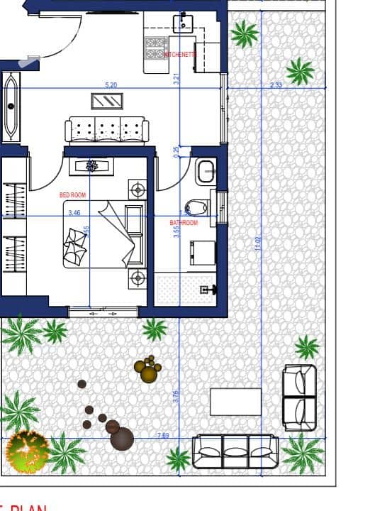 غرفه + حمام + ريسبشن + مطبخ أمريكان