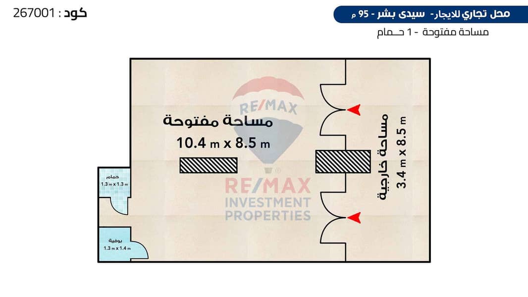 محل تجاري للإيجار 95م - سيدي بشر ( ش العيسوي مباشرة )