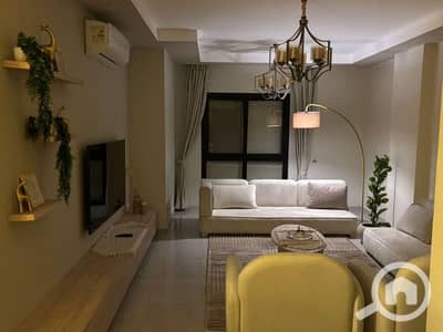 شقة مميزة للإيجار داخل كمبوند Sky Condos، تشطيب كامل، تقع في الدور الأول بمساحة 130 متر.