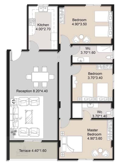 شقه في الاندلس ١ ١٧٨ متر ٣ غرف استلام فوري خطوات من هايد بارك وميفيدا بحري